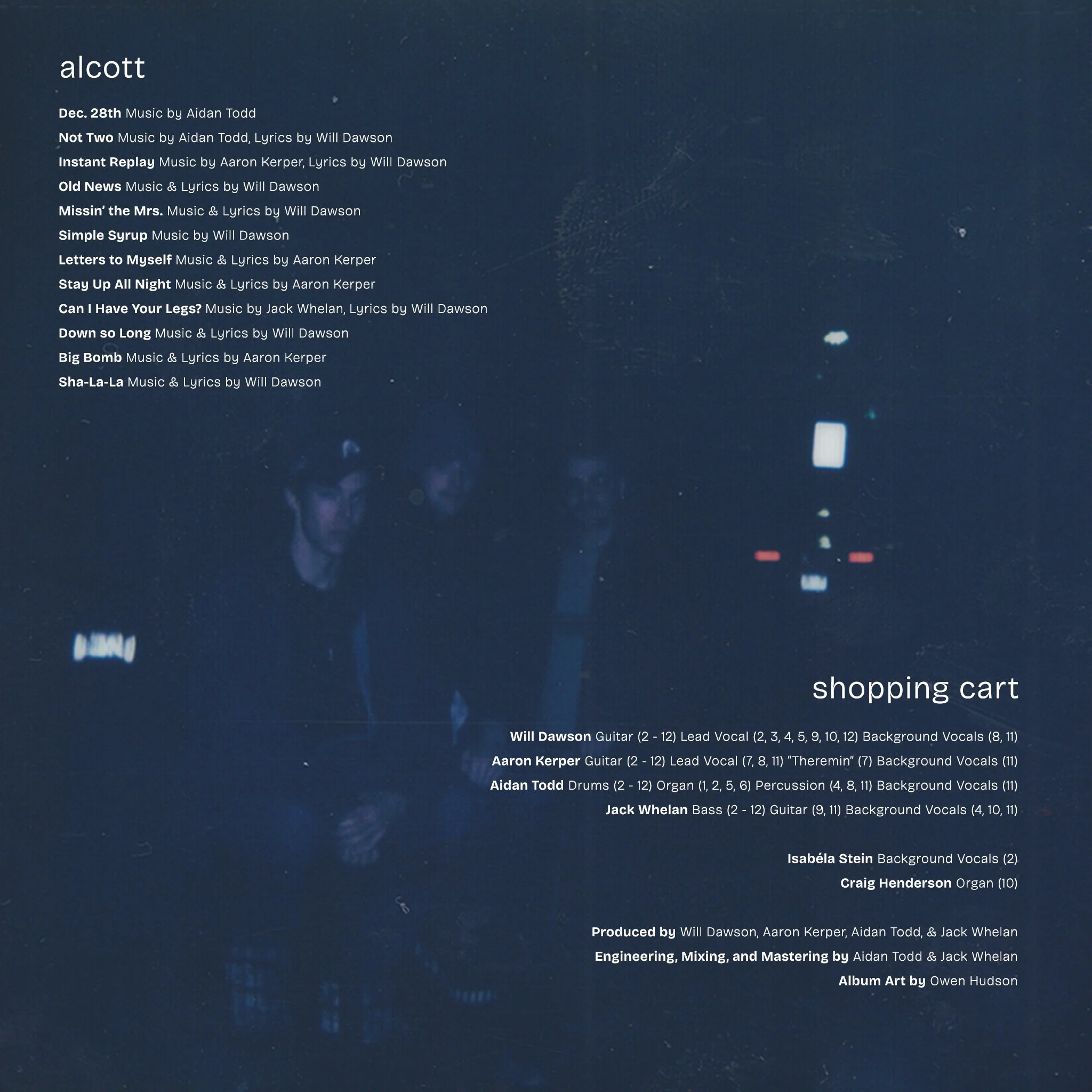 “Alcott is the debut album from the band Shopping Cart, being released in 2025, with several of these songs tracing back as 2019. The album was recorded in the basement of an apartment in the Allston neighborhood of Boston, Massachusetts. It was recorded in two sessions: March 2024, and July of 2024, with the some final parts being recorded remotely in Pennsylvania.